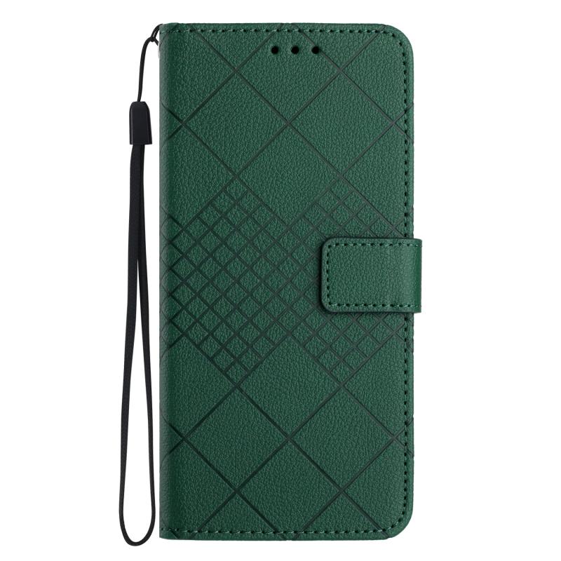 For Samsung Galaxy S22+ 5G Rhombic Grid Texture Leather Phone Case(Green)