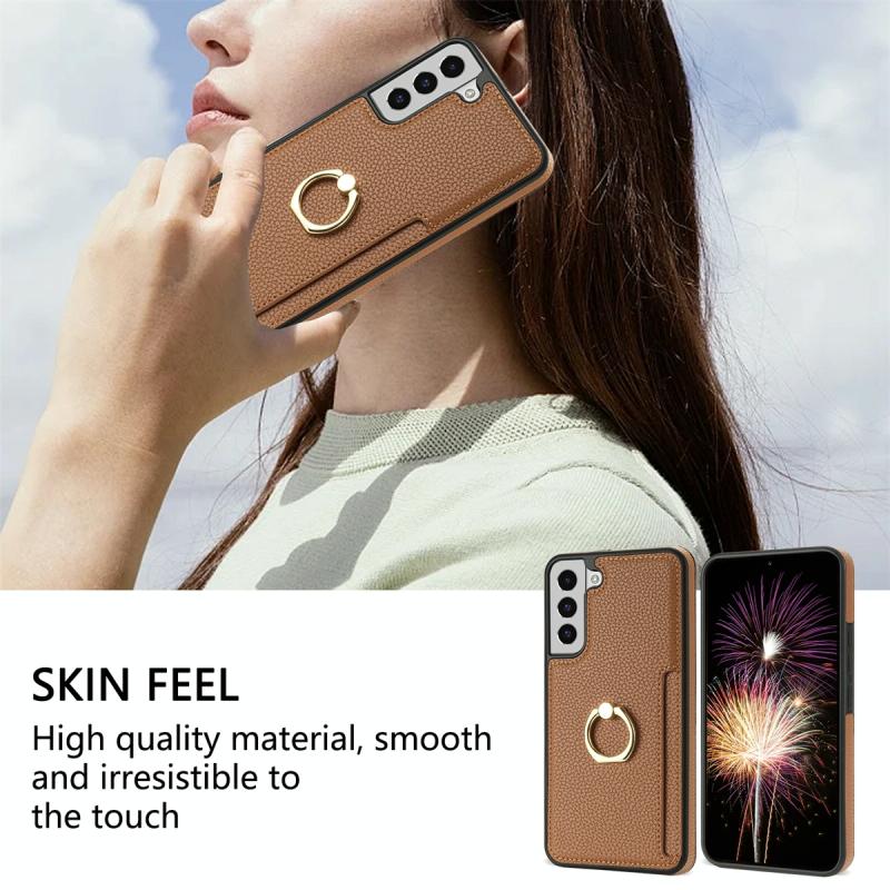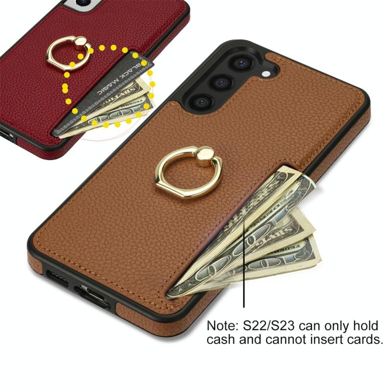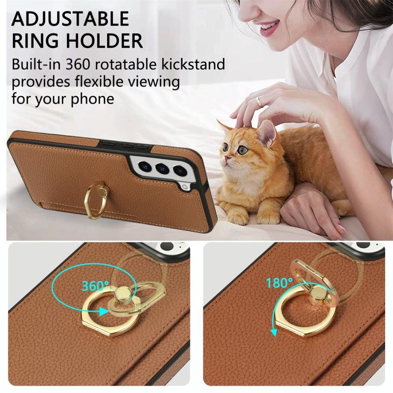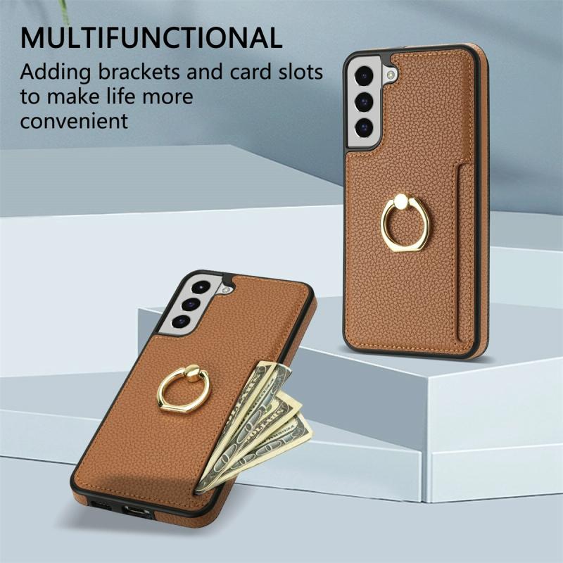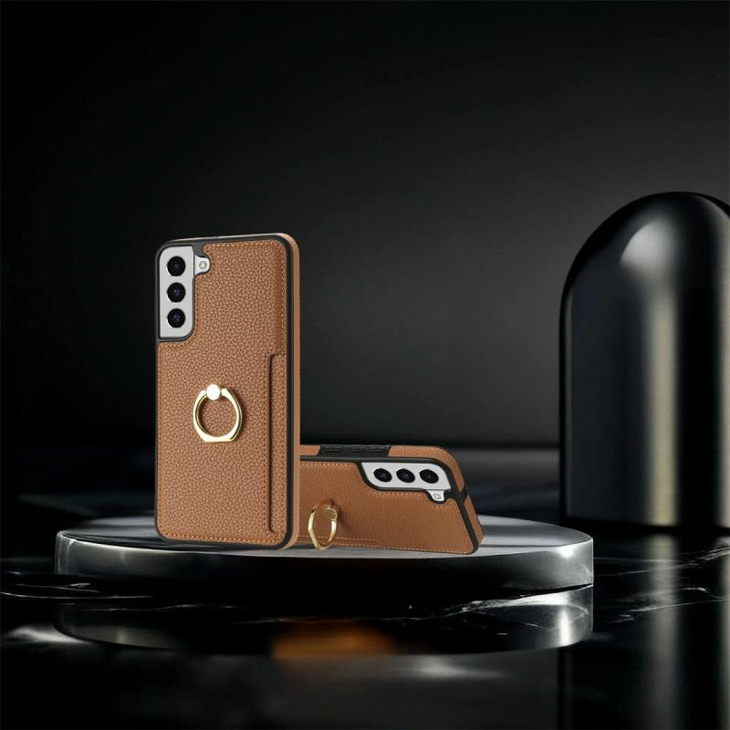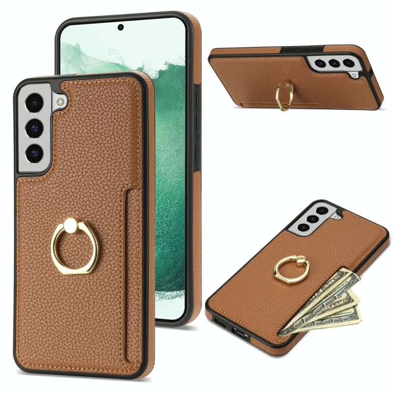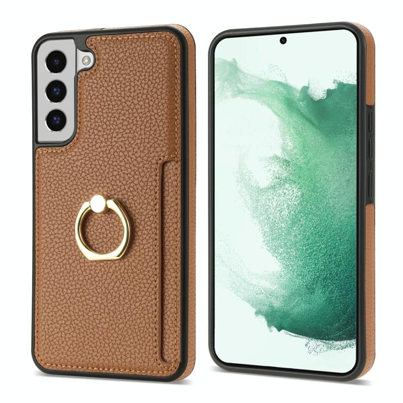 For Samsung Galaxy S22 5G Ring Card Litchi Leather Back Phone Case(Brown)