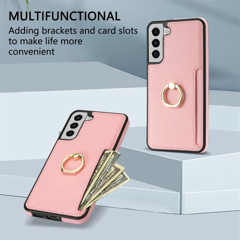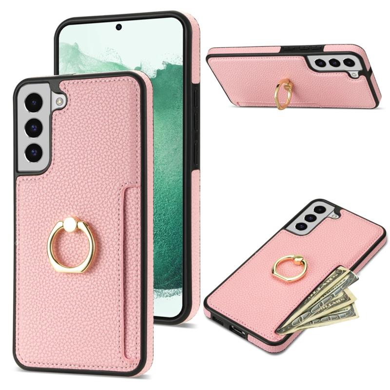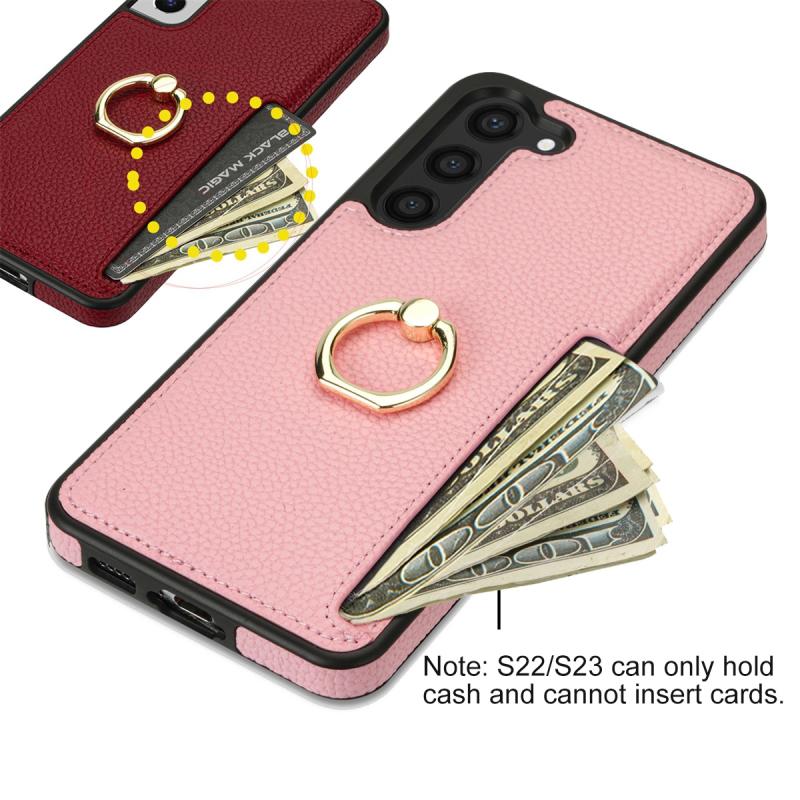 For Samsung Galaxy S22 5G Ring Card Litchi Leather Back Phone Case(Pink)