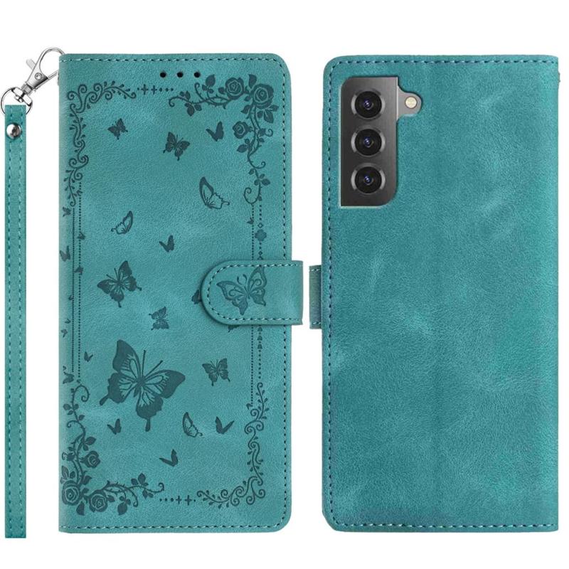 For Samsung Galaxy S22+ 5G Secret Garden Butterfly Pattern Leather Phone Case(Green)