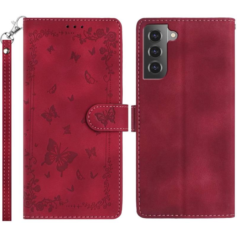 For Samsung Galaxy S22 5G Secret Garden Butterfly Pattern Leather Phone Case(Red)