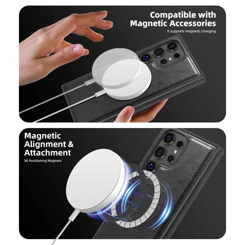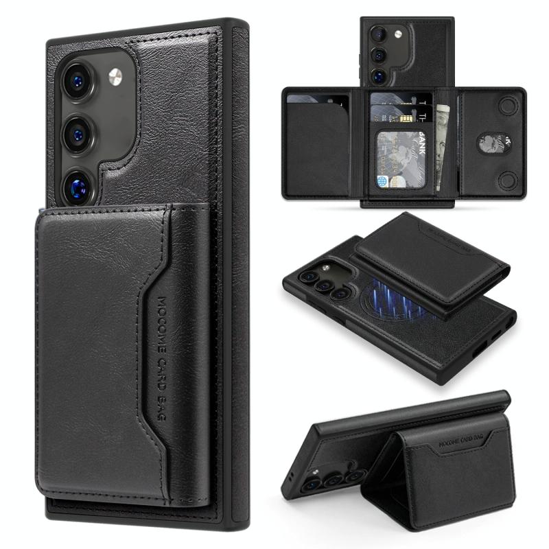 For Samsung Galaxy S22 5G Shield Multi-functional MagSafe Card Bag Phone Case(Black)