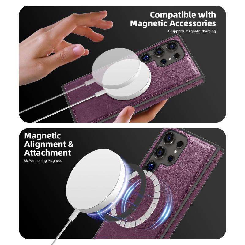 For Samsung Galaxy S22+ 5G Shield Multi-functional MagSafe Card Bag Phone Case(Purple)