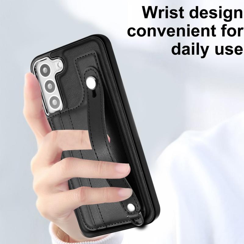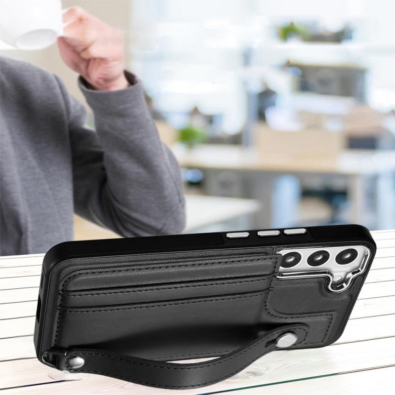 For Samsung Galaxy S22+ 5G Shockproof Leather Phone Case with Wrist Strap(Black)