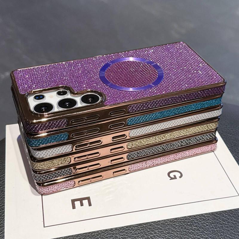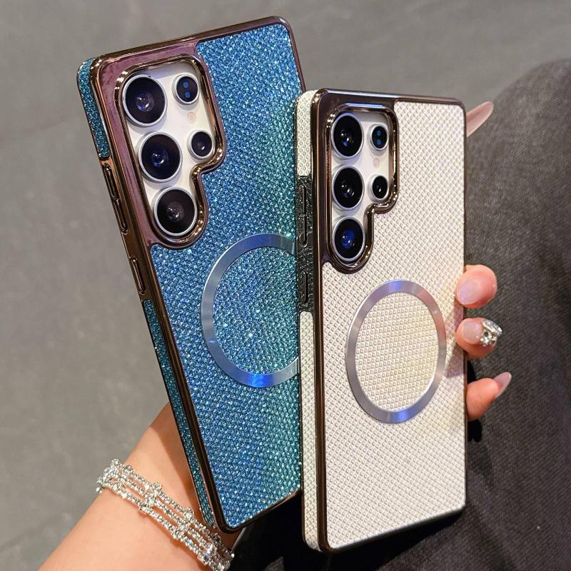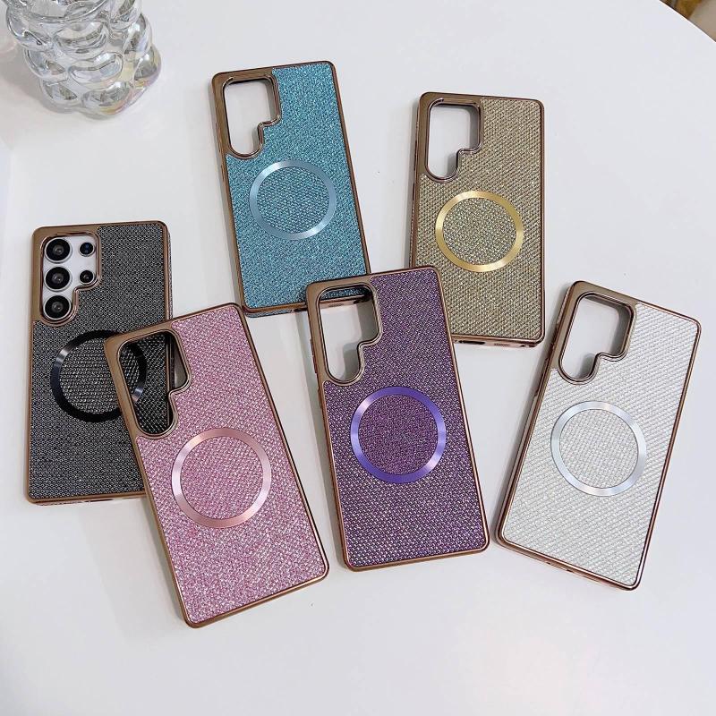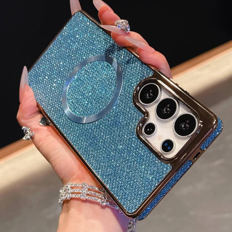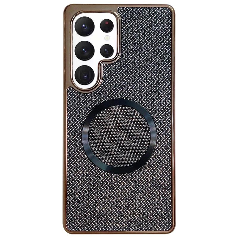 For Samsung Galaxy S22 Ultra 5G Electroplating PC Glitter Grain MagSafe Phone Case(Black)