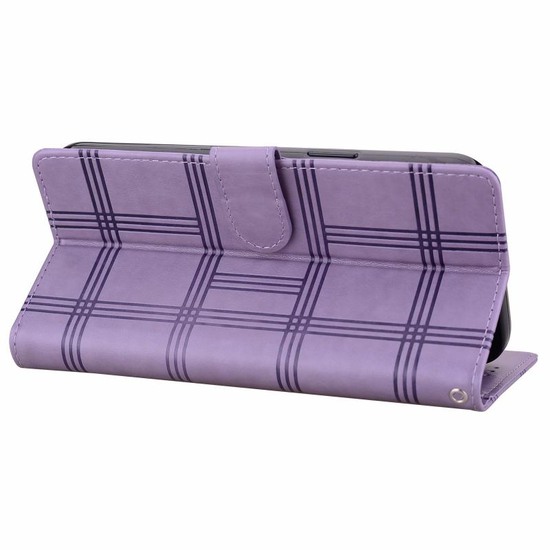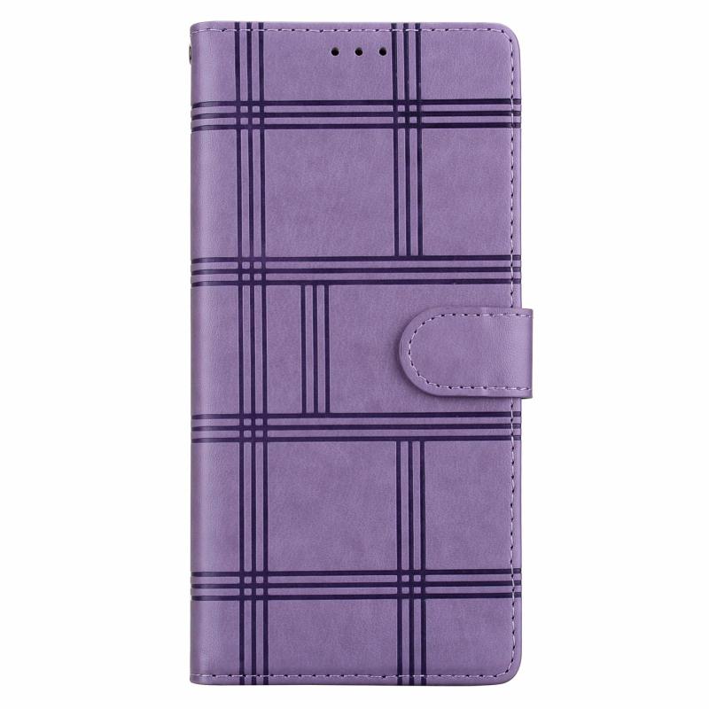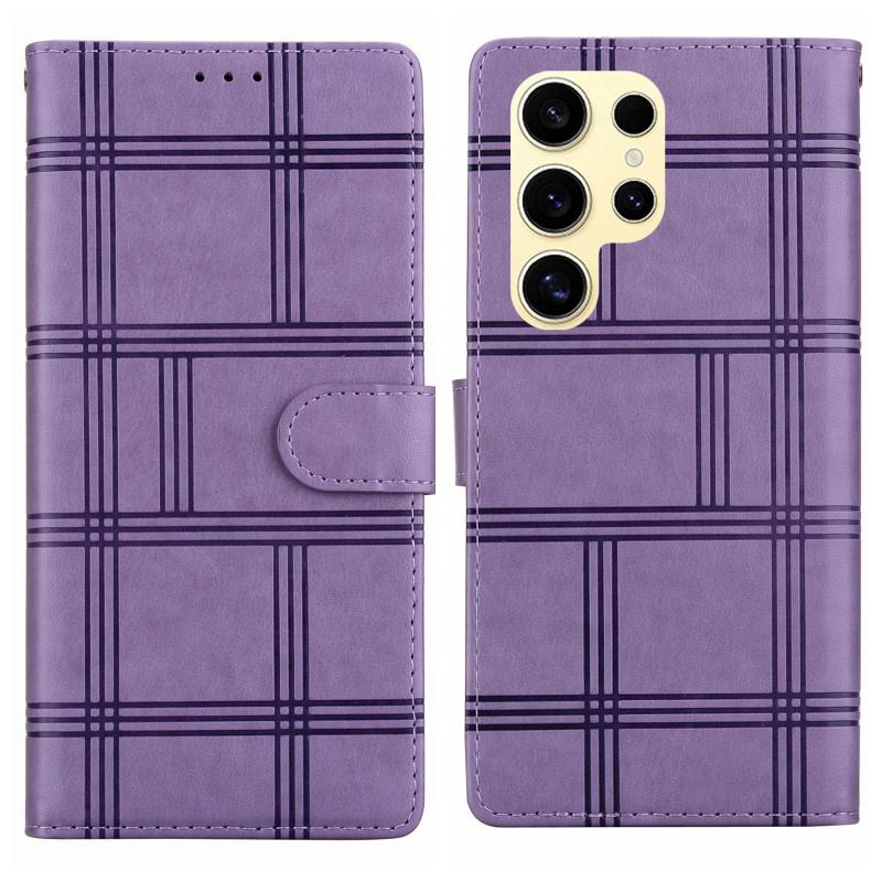 For Samsung Galaxy S22 Ultra 5G Embossed Checkered Leather Phone Case(Purple)