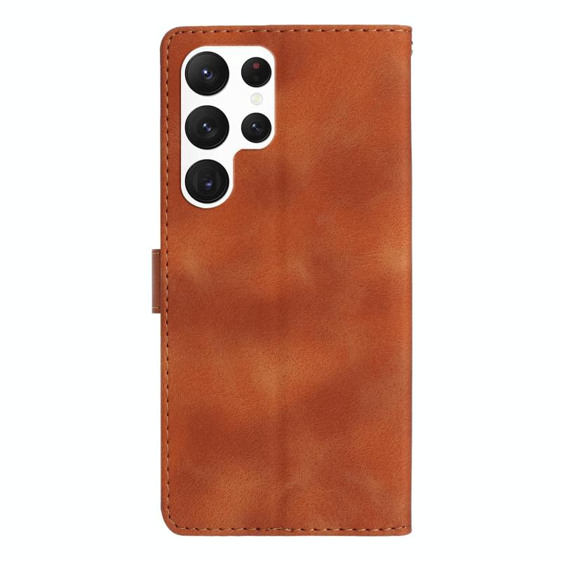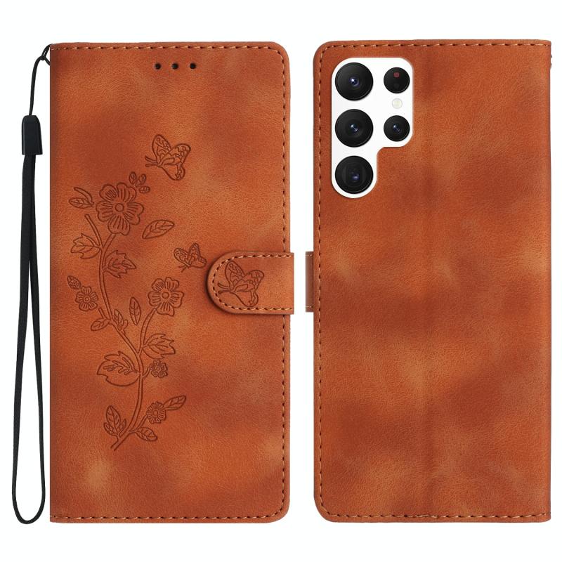 For Samsung Galaxy S22 Ultra 5G Flower Butterfly Embossing Pattern Leather Phone Case(Brown)