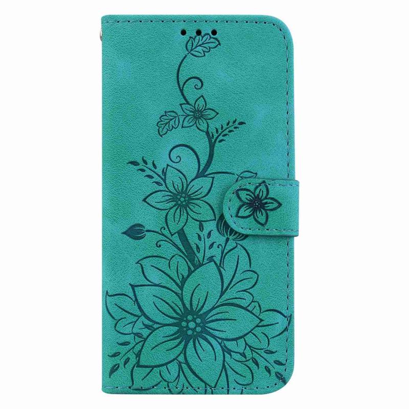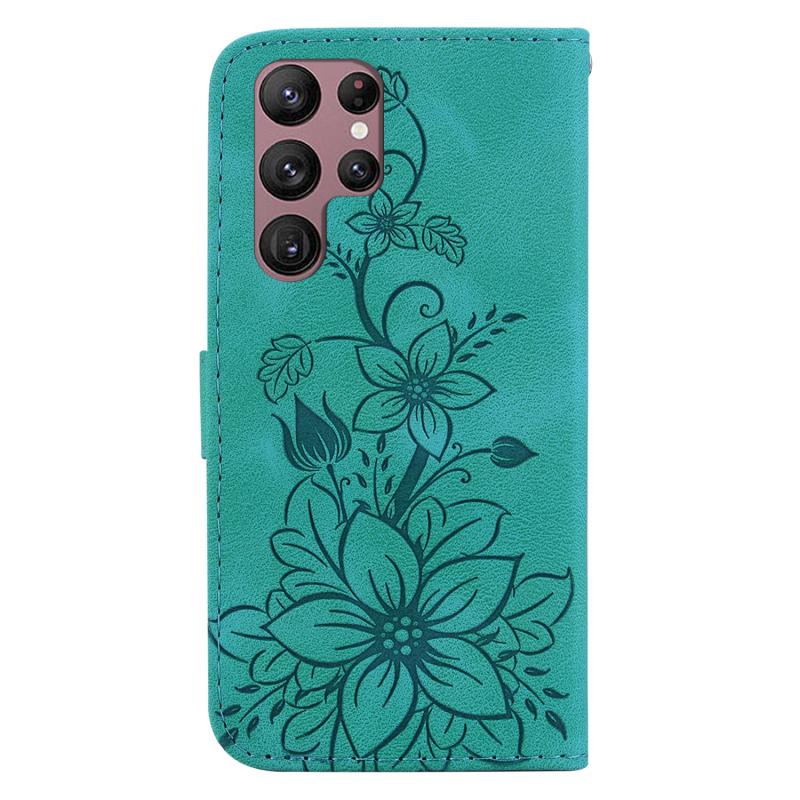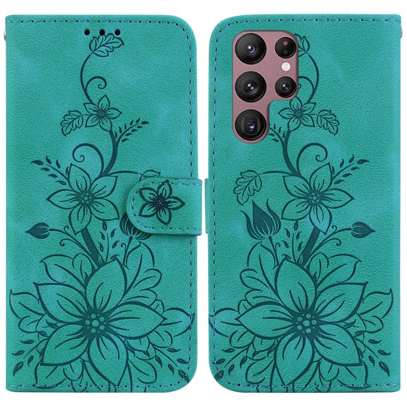 For Samsung Galaxy S22 Ultra 5G Lily Embossed Leather Phone Case(Green)