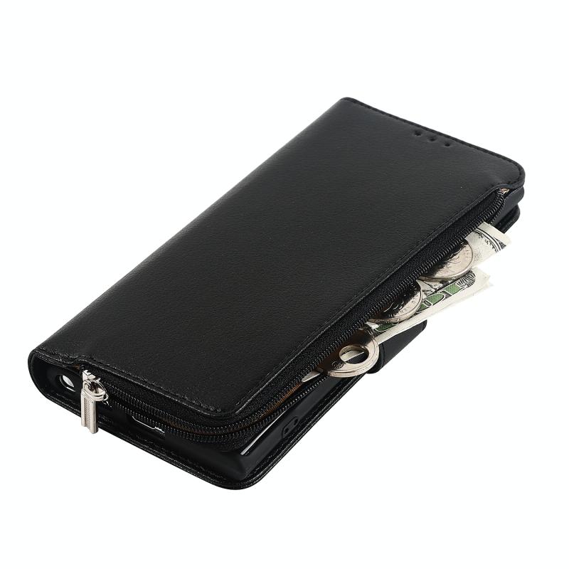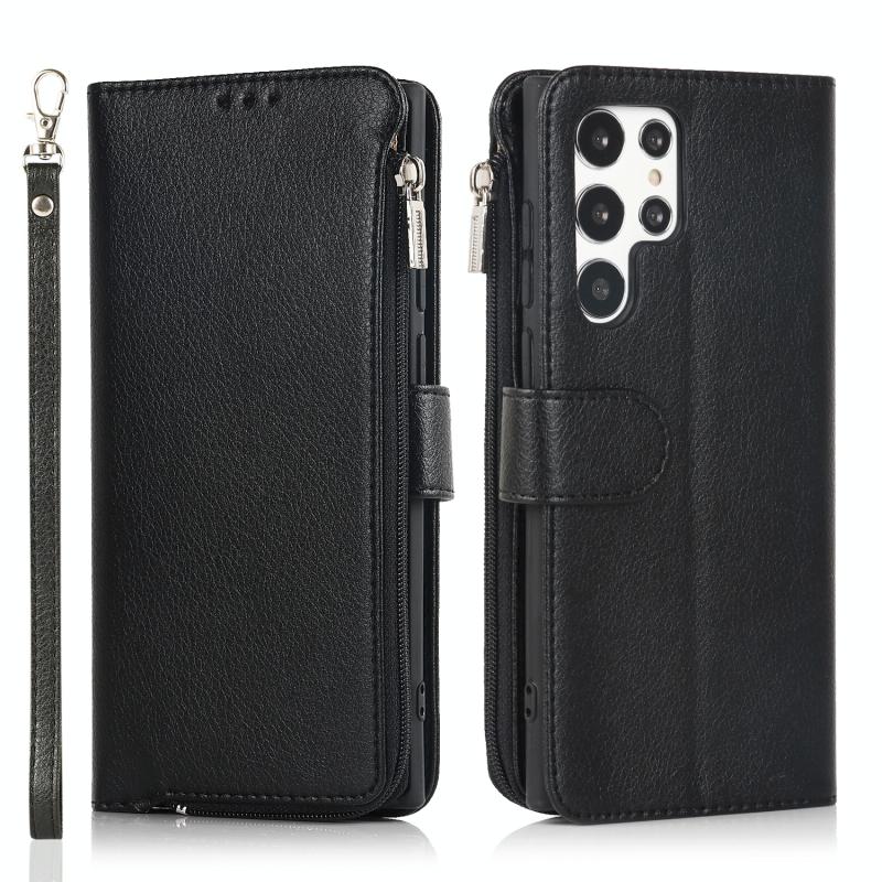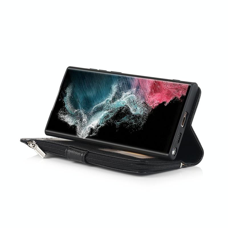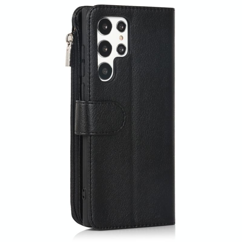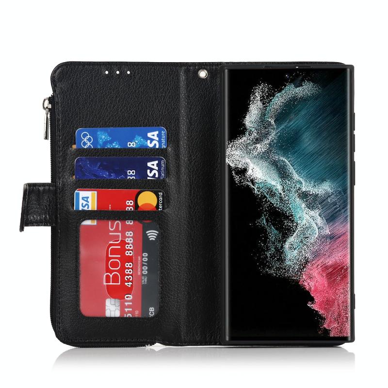 For Samsung Galaxy S22 Ultra 5G Microfiber Zipper Horizontal Flip Leather Case(Black)