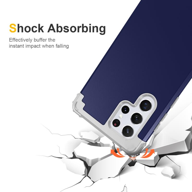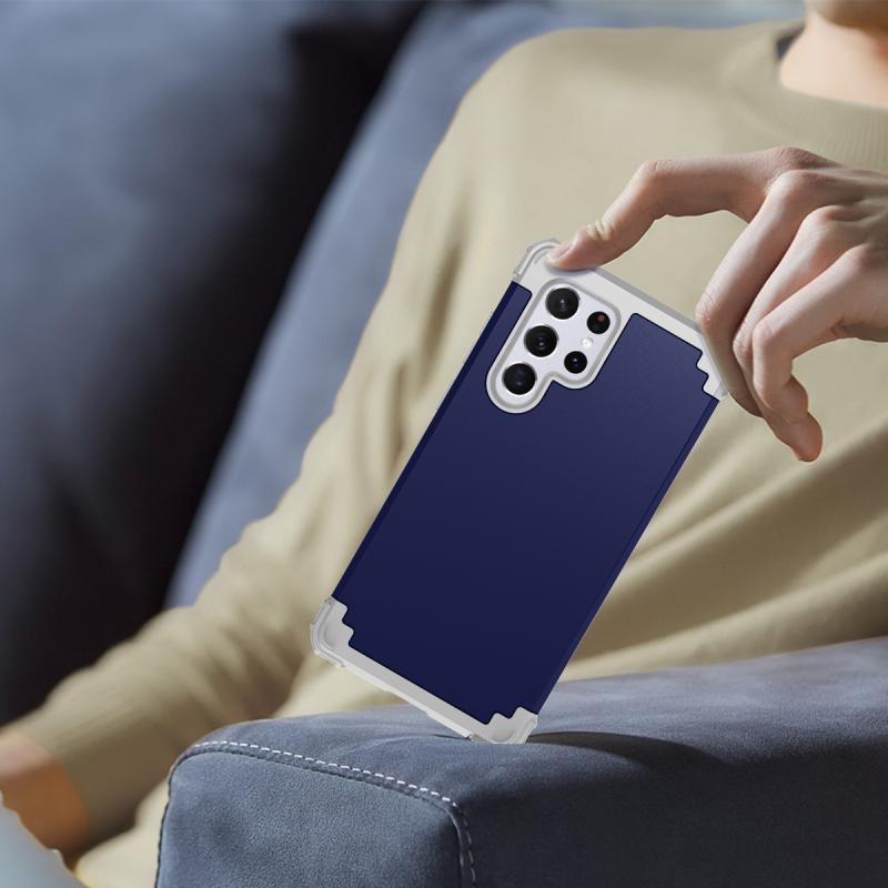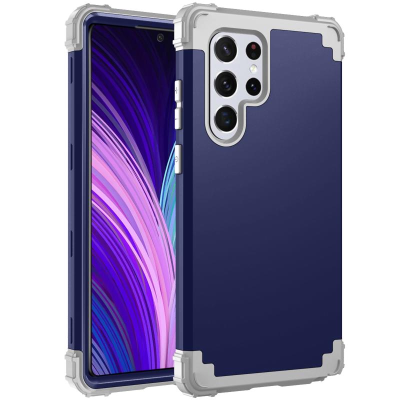 For Samsung Galaxy S22 Ultra 5G PC + Silicone Phone Case(Navy Blue+Grey)