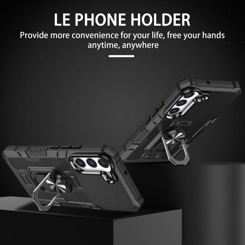 For Samsung Galaxy S22 Ultra 5G Ring Holder Armor Hybrid Phone Case(Black)
