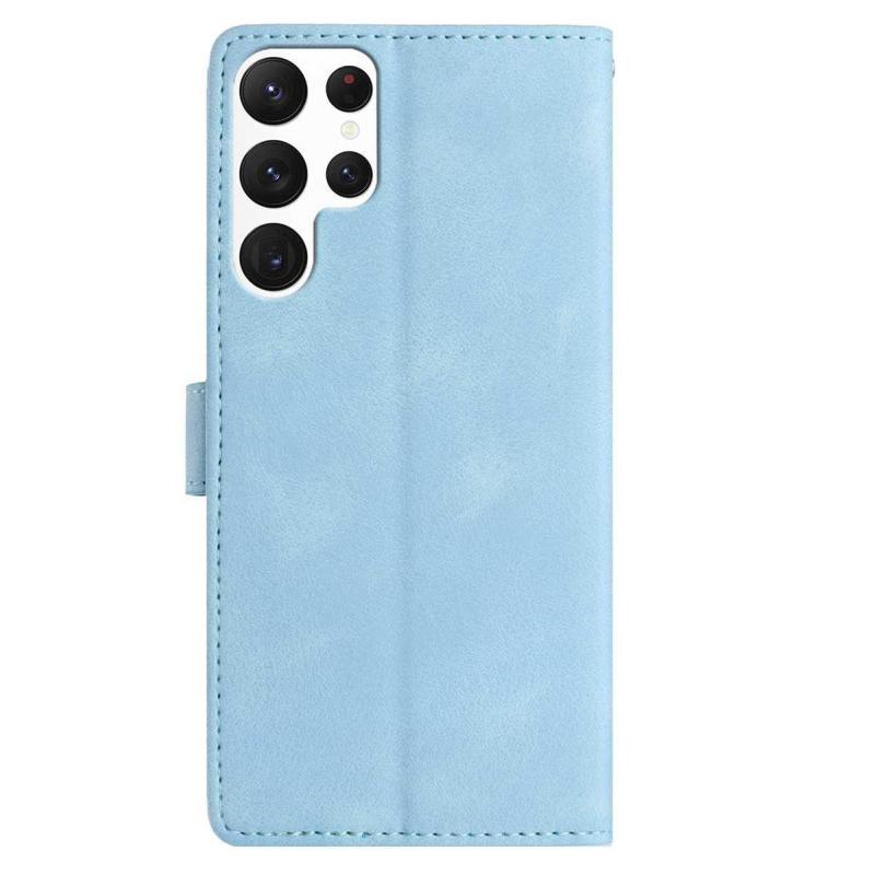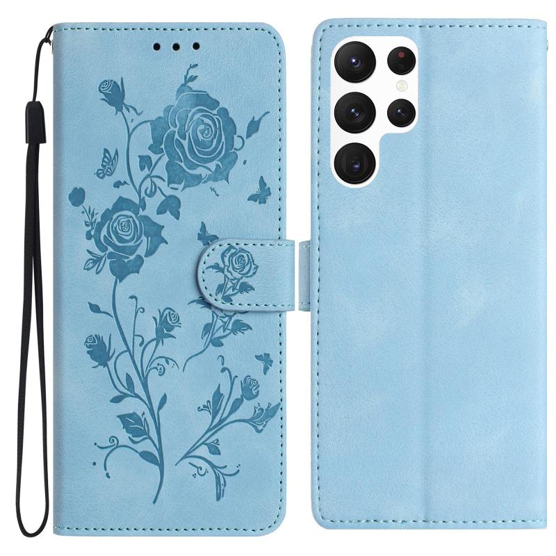 For Samsung Galaxy S22 Ultra 5G Rose Flower Embossing Pattern Leather Phone Case(Sky Blue)