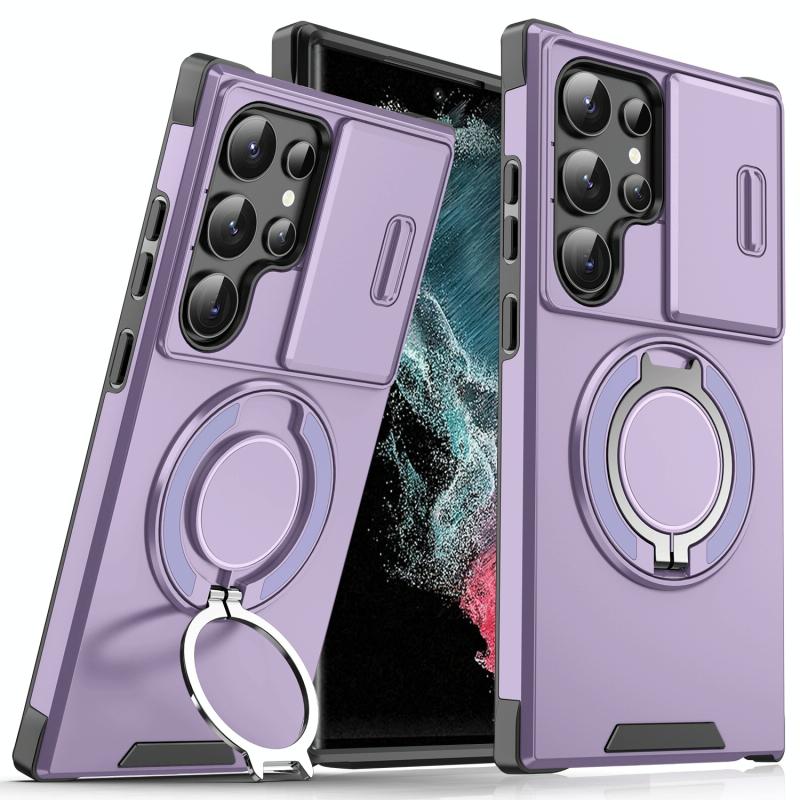 For Samsung Galaxy S22 Ultra 5G Sliding Camshield Ring Holder Phone Case(Purple)