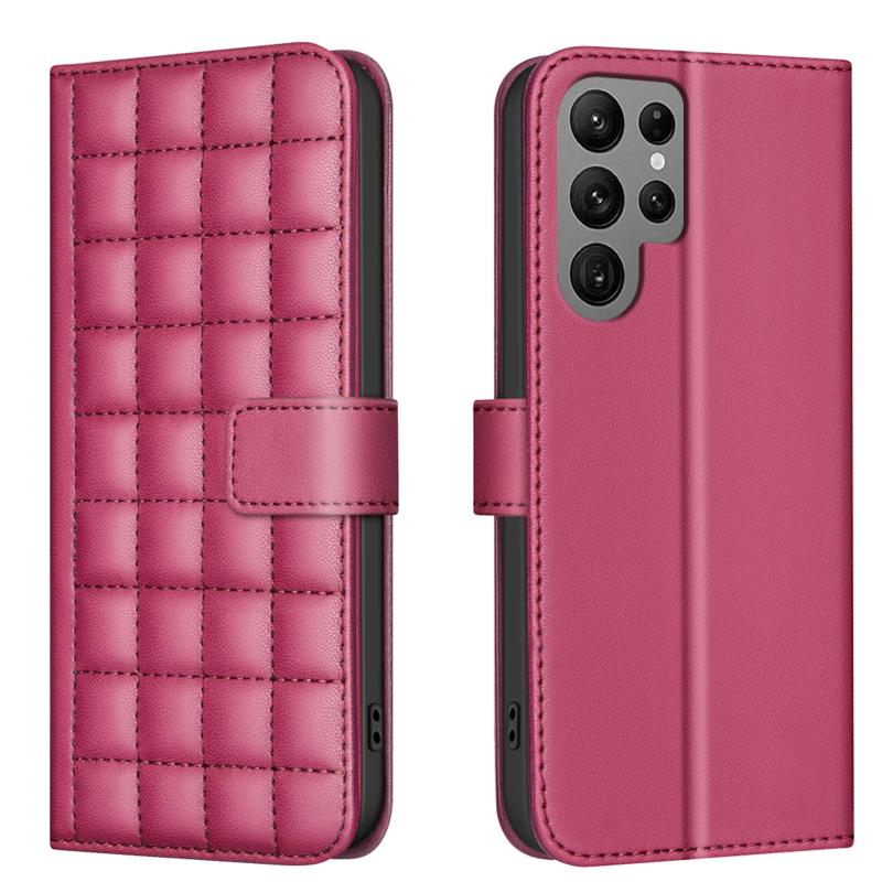 For Samsung Galaxy S22 Ultra 5G Square Texture Leather Phone Case(Red)