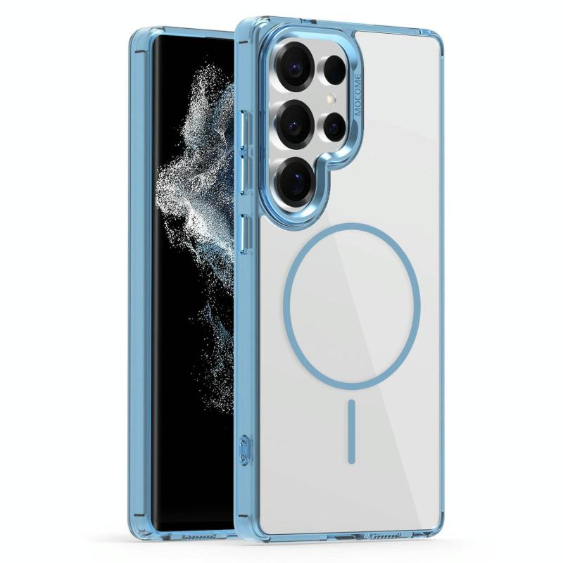 For Samsung Galaxy S22 Ultra 5G Star Shield Thin Circle MagSafe Phone Case(Light Blue)