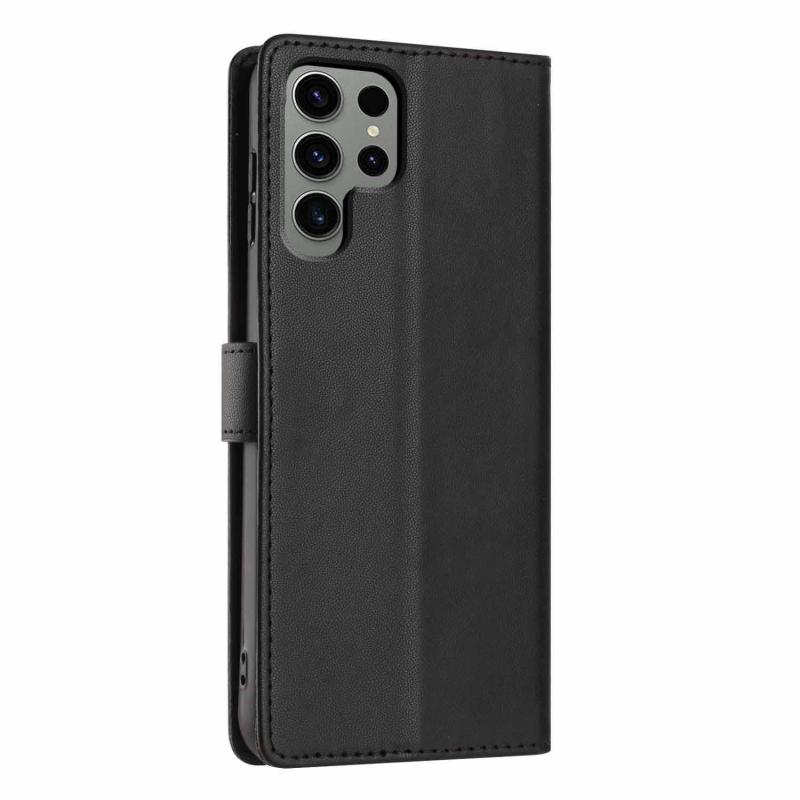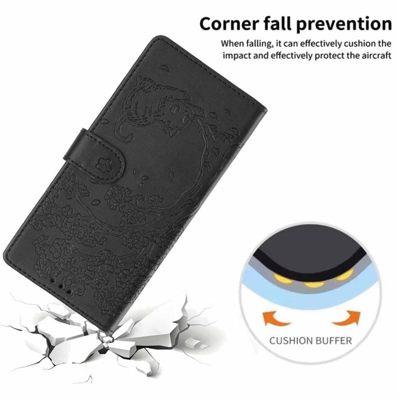 For Samsung Galaxy S22 Ultra 5G Tree Cat Embossed Flip Vegan Leather Phone Case(Black)