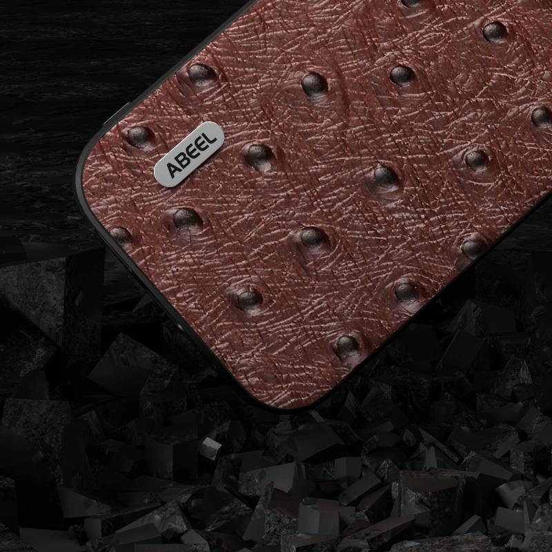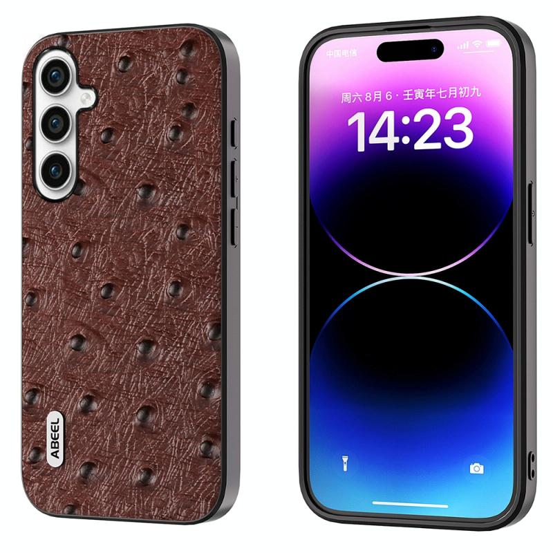 For Samsung Galaxy S23 FE 5G ABEEL Genuine Leather Ostrich Texture Phone Case(Coffee)