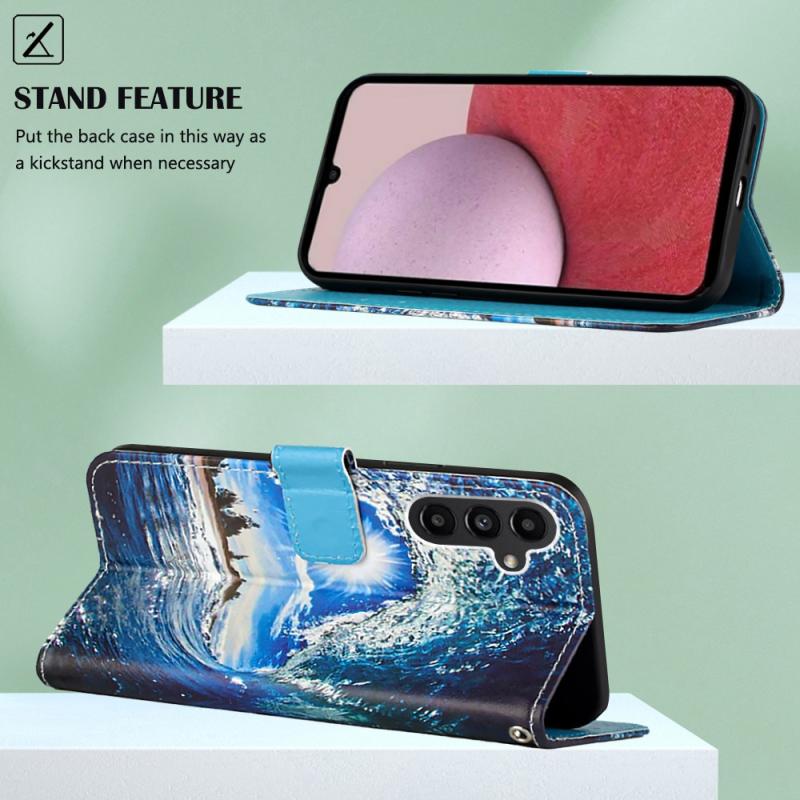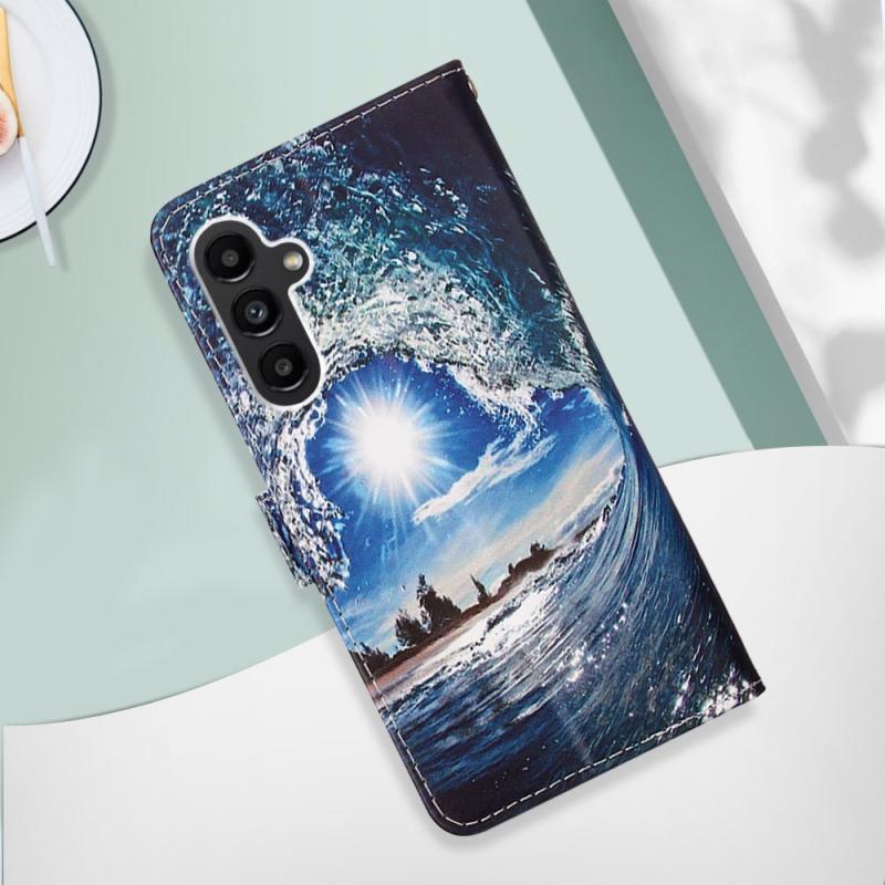For Samsung Galaxy S23 FE 5G Colored Drawing Pattern Plain Weave Leather Phone Case(Waves And Sun)