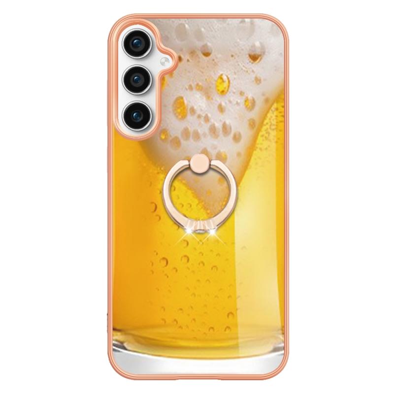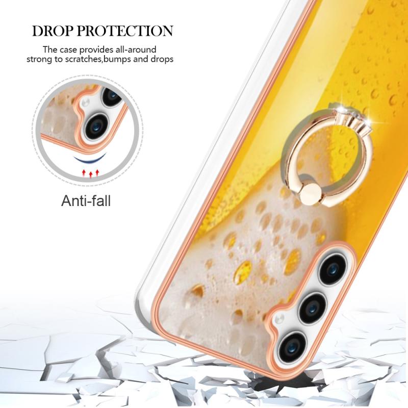 For Samsung Galaxy S23 FE 5G Electroplating Dual-side IMD Phone Case with Ring Holder(Draft Beer)