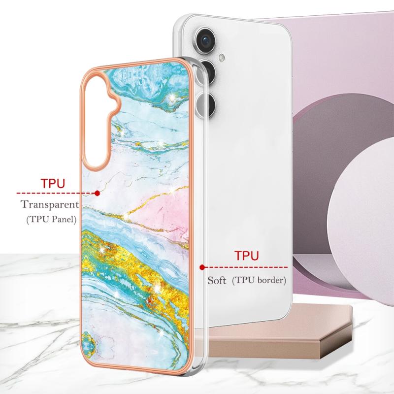 For Samsung Galaxy S23 FE 5G Electroplating Marble Dual-side IMD Phone Case(Green 004)