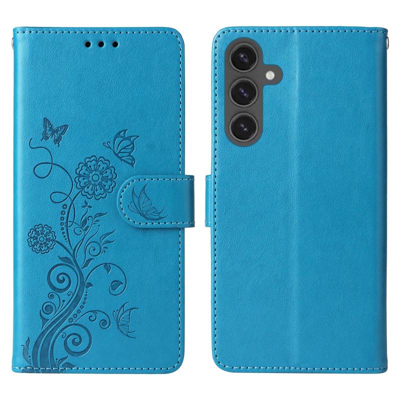 For Samsung Galaxy S23 FE 5G Embossed Butterfly Flowers Leather Phone Case(Blue)