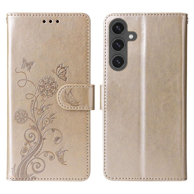 For Samsung Galaxy S23 FE 5G Embossed Butterfly Flowers Leather Phone Case(Gold)