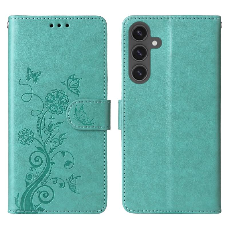 For Samsung Galaxy S23 FE 5G Embossed Butterfly Flowers Leather Phone Case(Green)