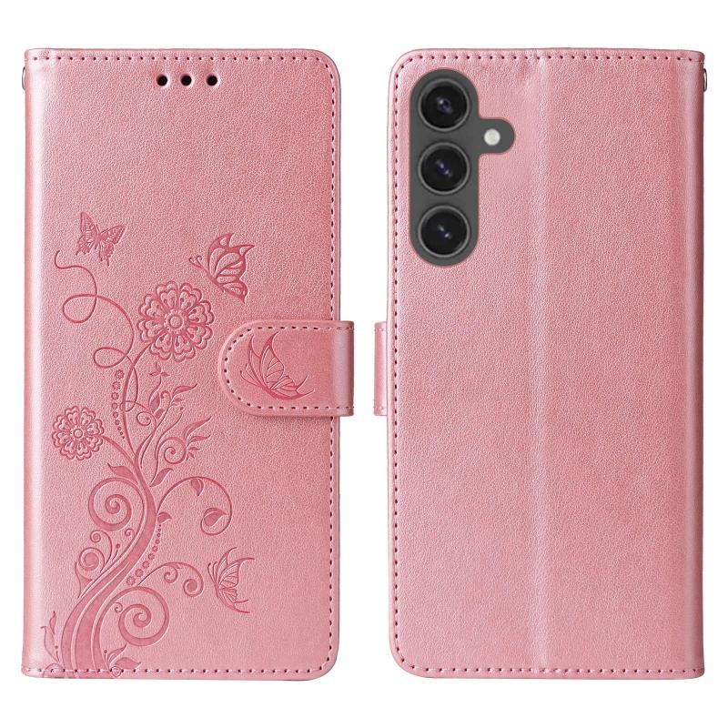 For Samsung Galaxy S23 FE 5G Embossed Butterfly Flowers Leather Phone Case(Rose Gold)