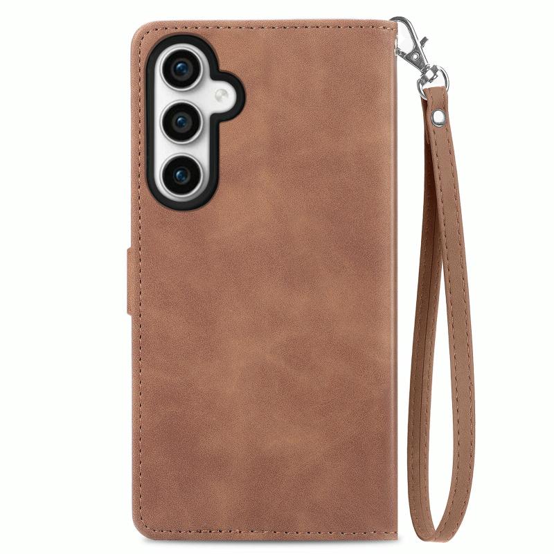 For Samsung Galaxy S23 FE 5G Embossed Flower Zipper Leather Phone Case(Brown)