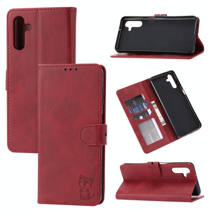 For Samsung Galaxy S23 FE 5G Embossed Happy Cat Pattern Flip Leather Phone Case(Red)