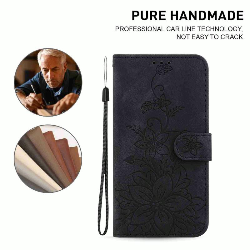 For Samsung Galaxy S23 FE 5G Lily Embossed Leather Phone Case(Black)