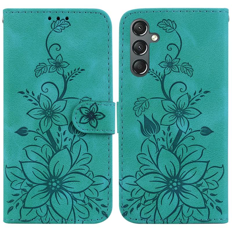 For Samsung Galaxy S23 FE 5G Lily Embossed Leather Phone Case(Green)
