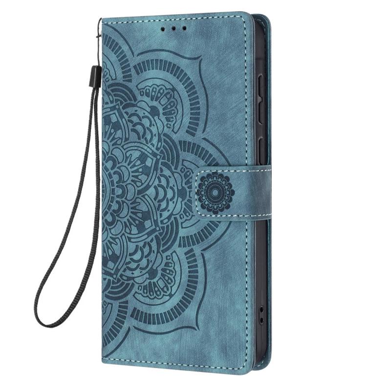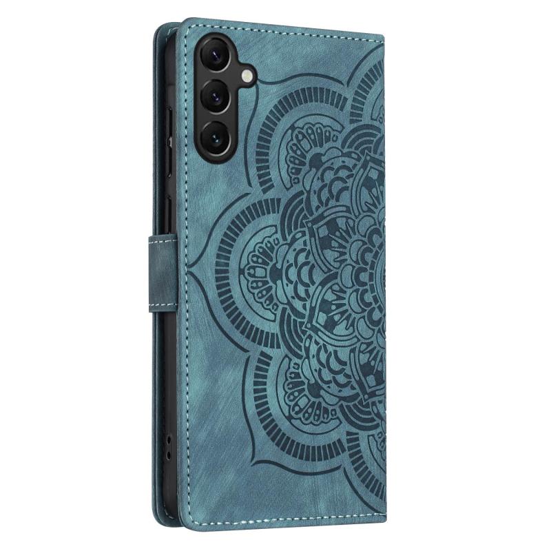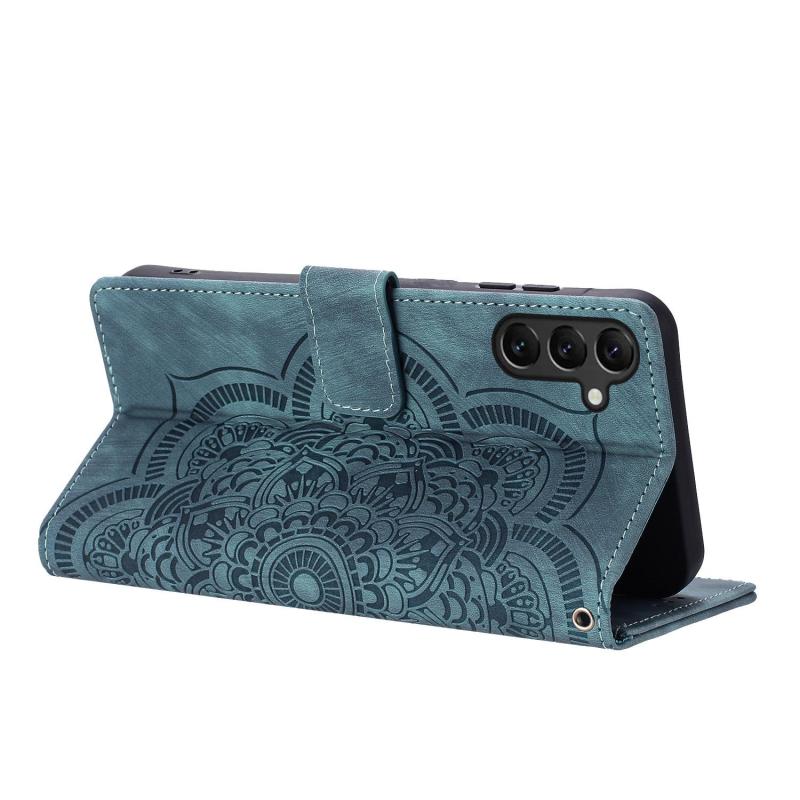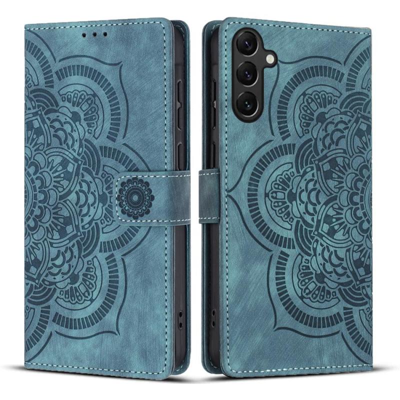 For Samsung Galaxy S23 FE 5G Mandala Embossed Retro Frosted Leather Phone Case(Blue)