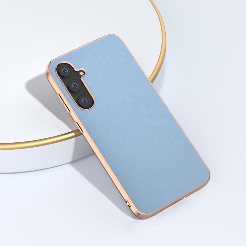 For Samsung Galaxy S23 FE 5G Nano Electroplating Haze Texture PU Phone Case(Light Blue)