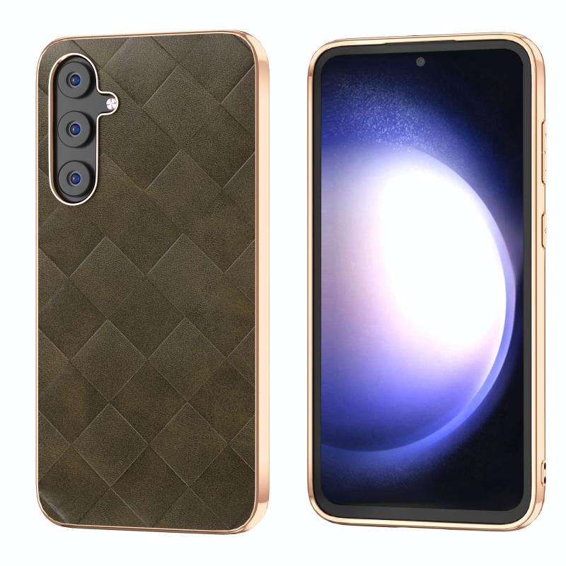 For Samsung Galaxy S23 FE 5G Nano Plating Weave Plaid Texture PU Phone Case(Green)
