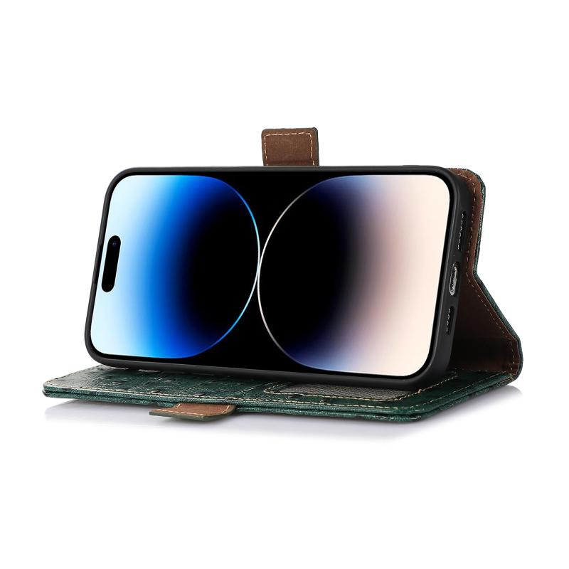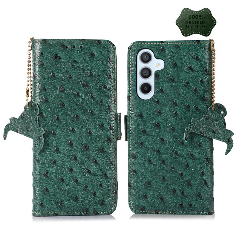 For Samsung Galaxy S23 FE 5G Ostrich Pattern Genuine Leather RFID Phone Case(Green)