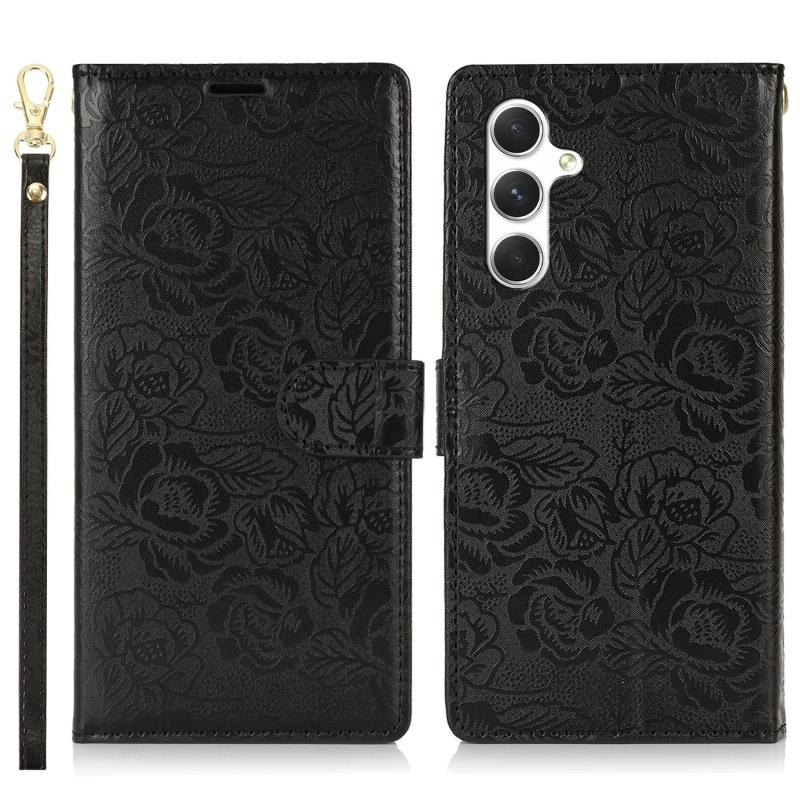 For Samsung Galaxy S23 FE 5G Peony Flowers Imprint Leather Phone Case(Black)