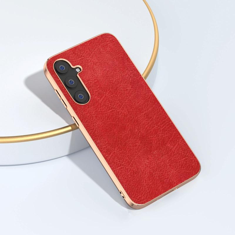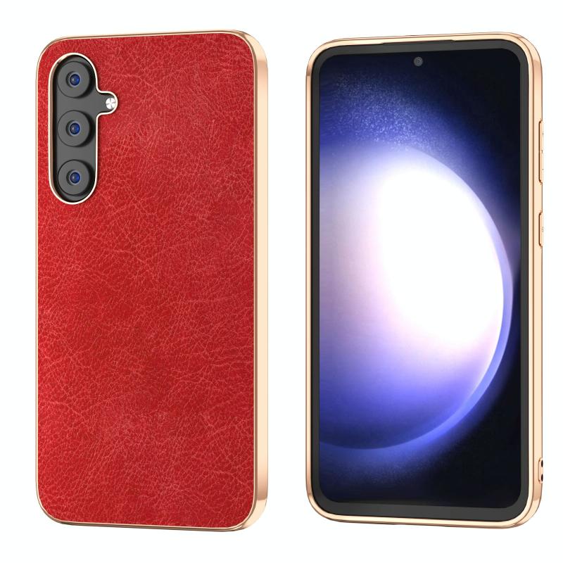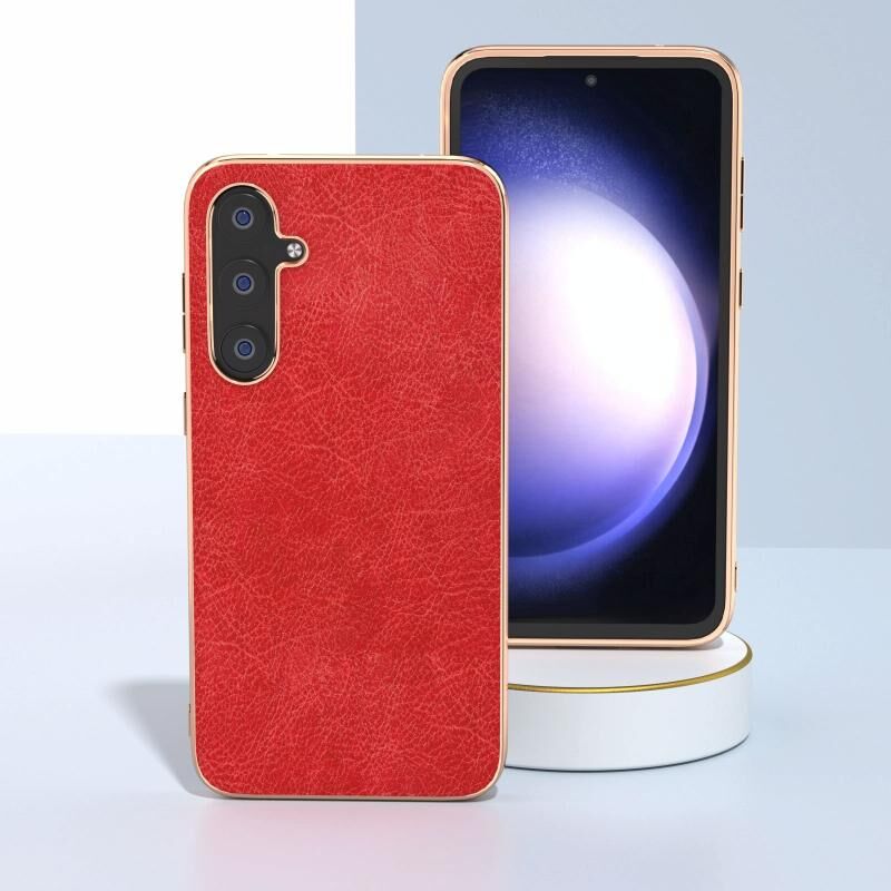 For Samsung Galaxy S23 FE 5G Plating Retro Litchi Texture PU Phone Case(Red)
