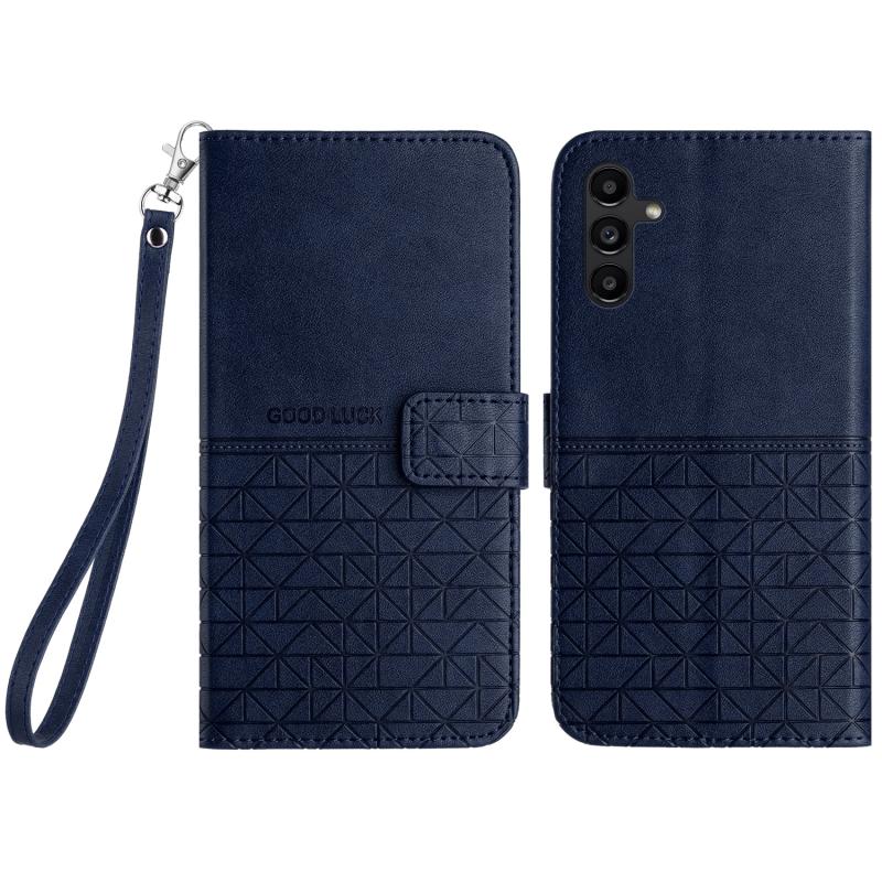 For Samsung Galaxy S23 FE 5G Rhombic Texture Leather Phone Case with Lanyard(Blue)