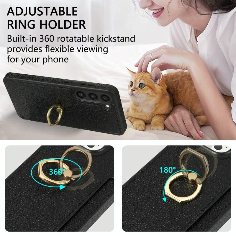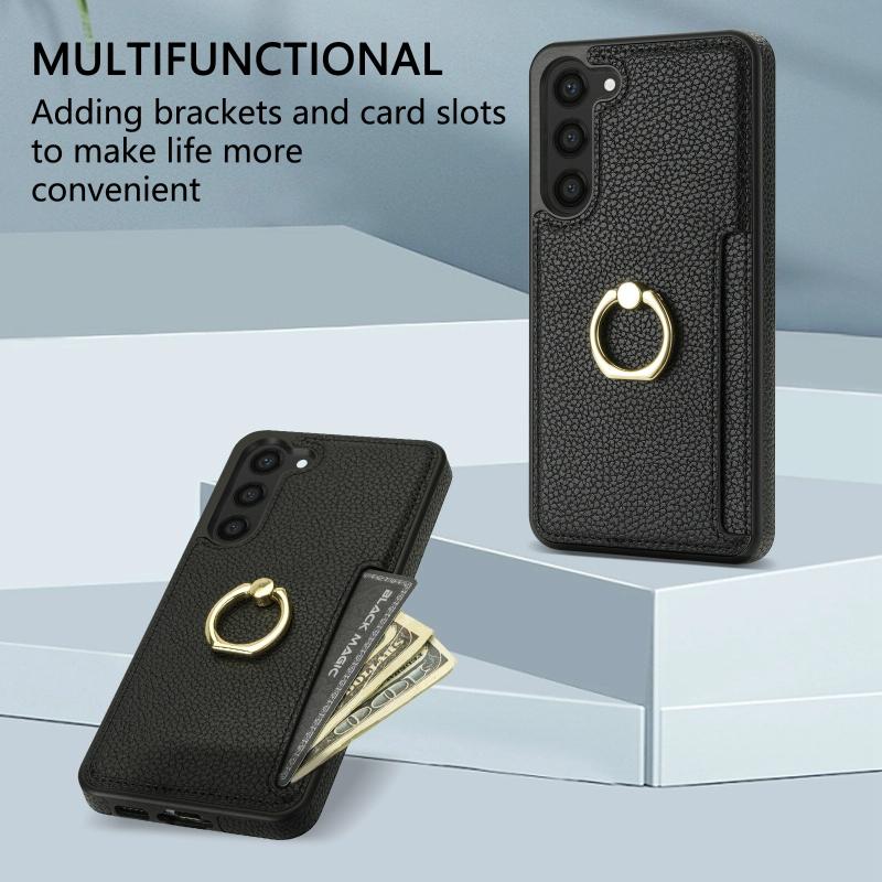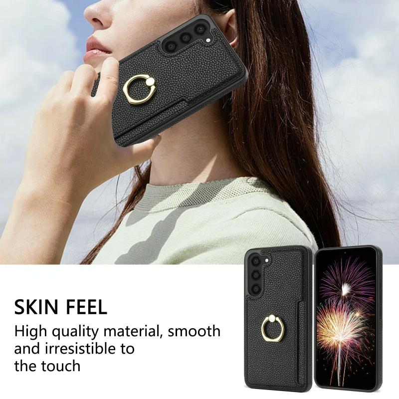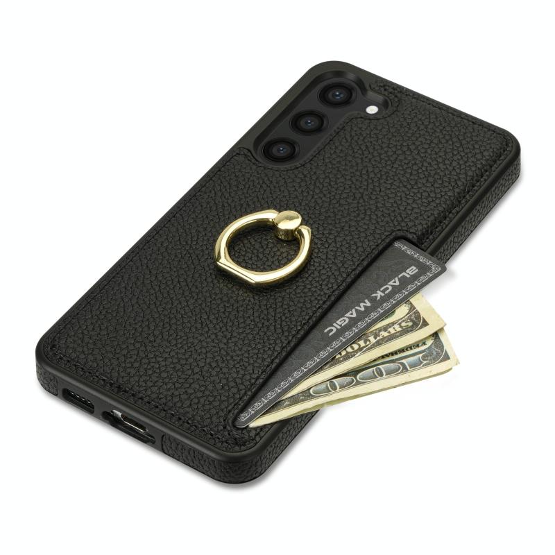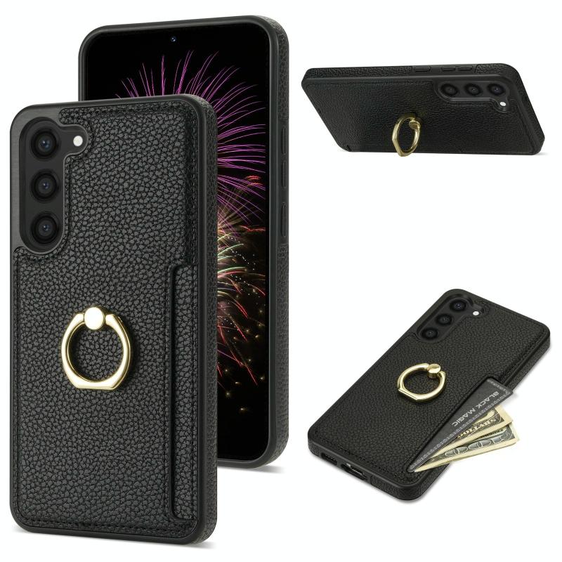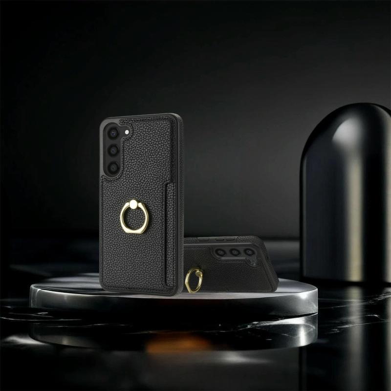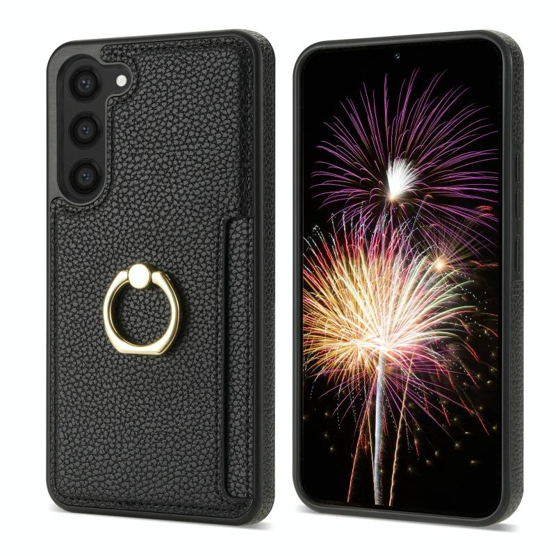 For Samsung Galaxy S23 FE 5G Ring Card Litchi Leather Back Phone Case(Black)