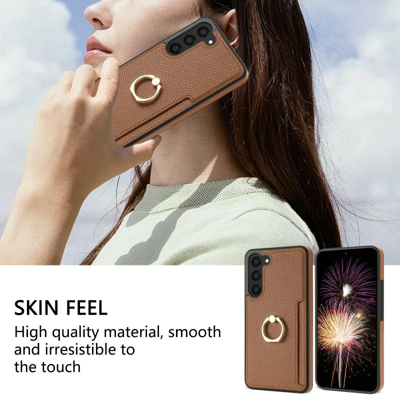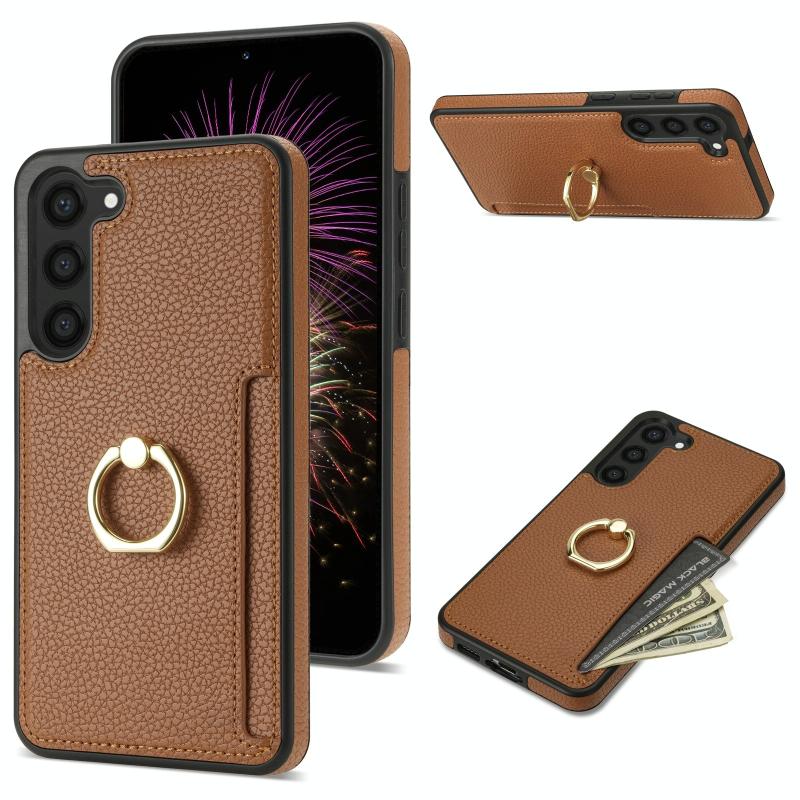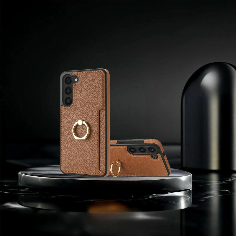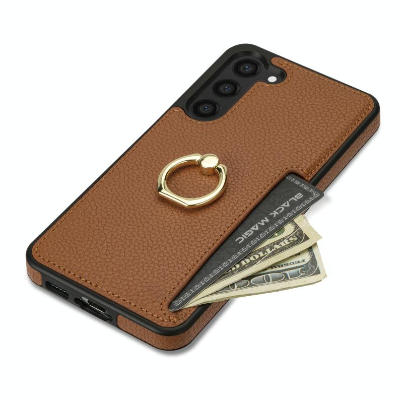 For Samsung Galaxy S23 FE 5G Ring Card Litchi Leather Back Phone Case(Brown)
