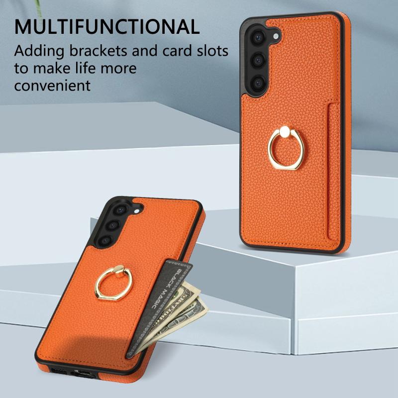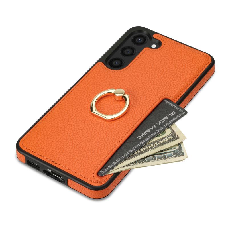 For Samsung Galaxy S23 FE 5G Ring Card Litchi Leather Back Phone Case(Orange)