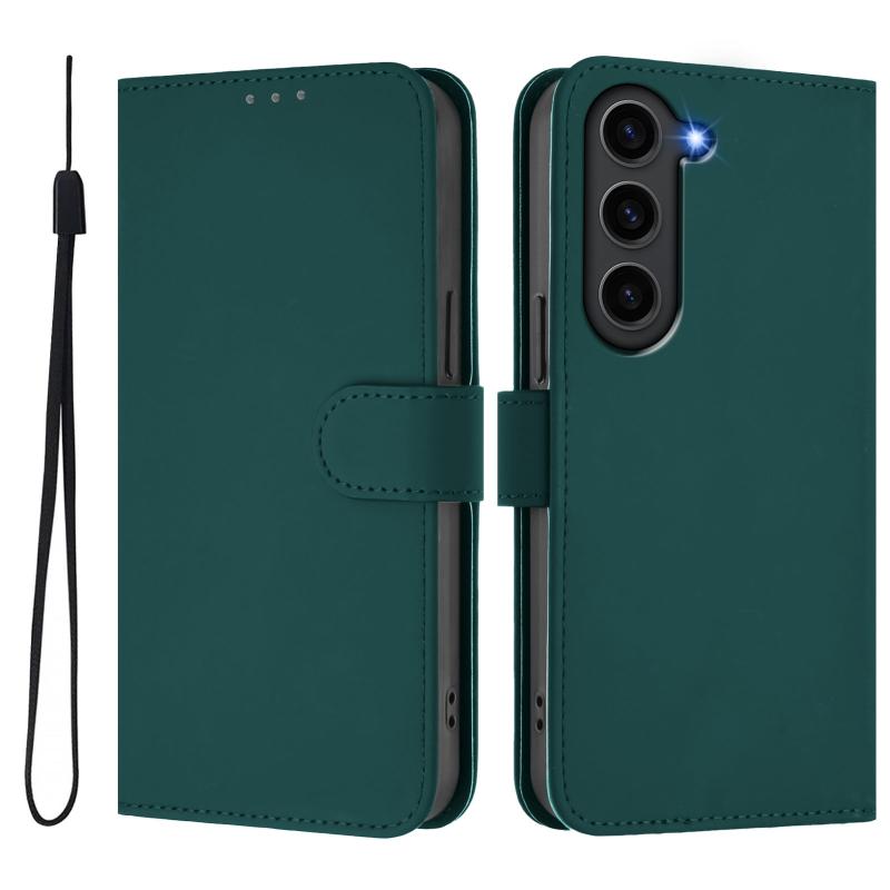 For Samsung Galaxy S23 FE 5G Skin Feel Solid Color Leather Phone Case with Lanyard(Dark Green)