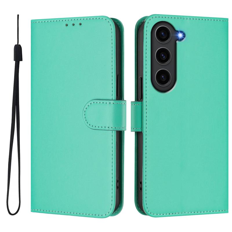 For Samsung Galaxy S23 FE 5G Skin Feel Solid Color Leather Phone Case with Lanyard(Green)