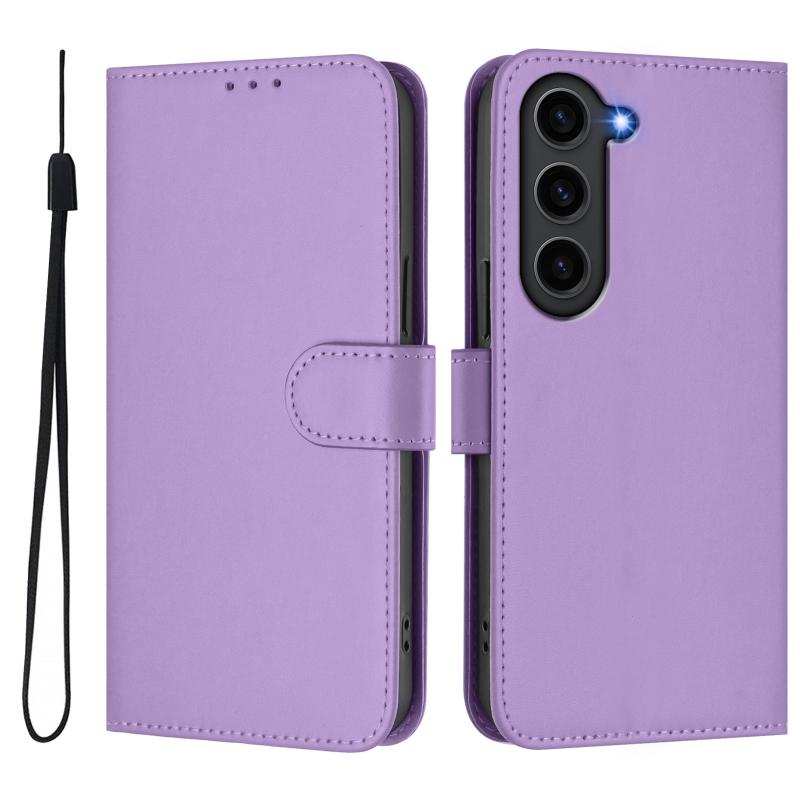 For Samsung Galaxy S23 FE 5G Skin Feel Solid Color Leather Phone Case with Lanyard(Lavender Purple)