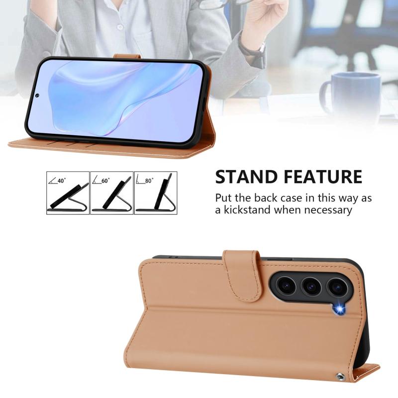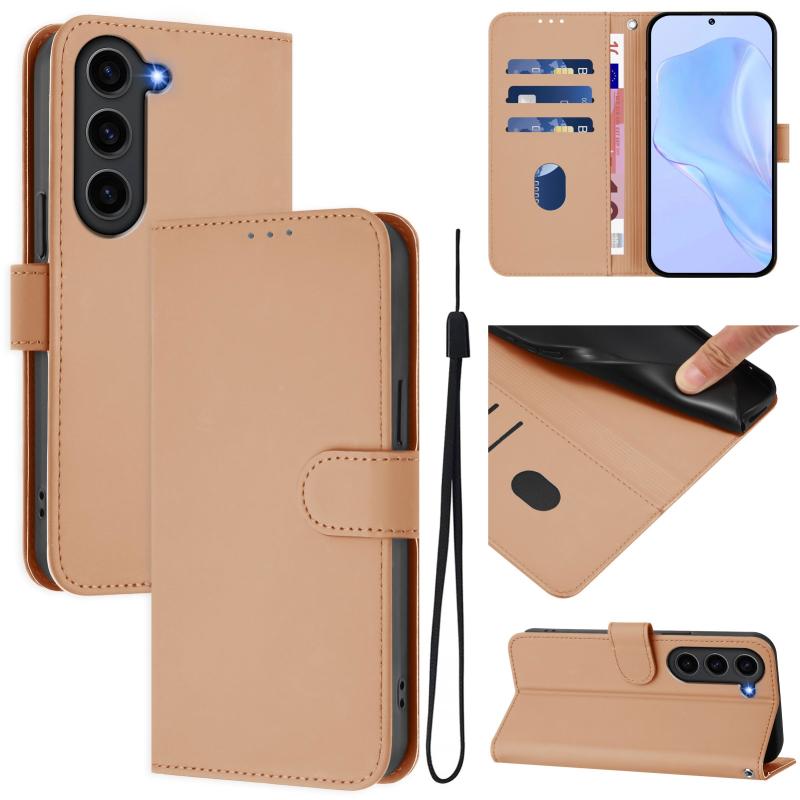 For Samsung Galaxy S23 FE 5G Skin Feel Solid Color Leather Phone Case with Lanyard(Nude)