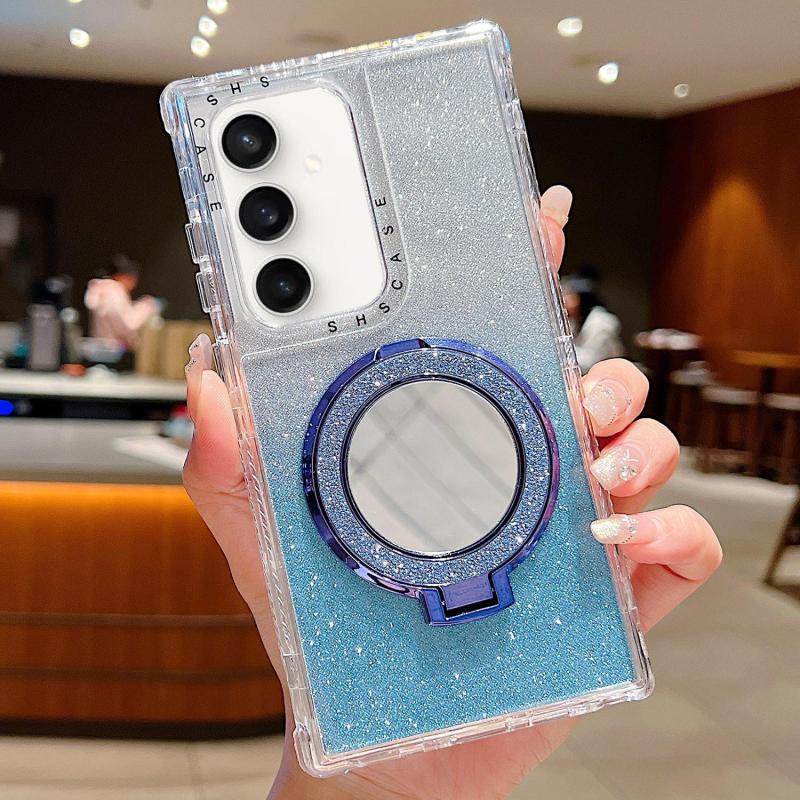 For Samsung Galaxy S23 FE Mirror Holder Glitterr MagSafe Phone Case(Blue)