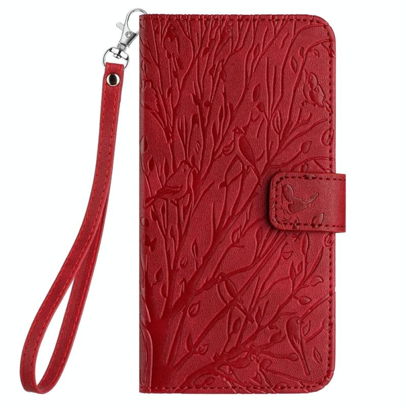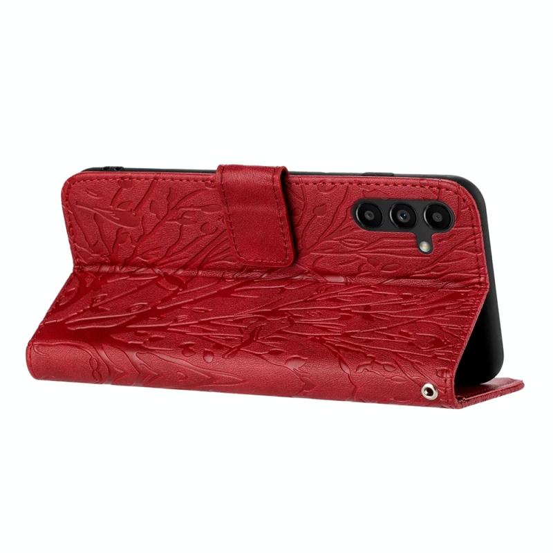For Samsung Galaxy S23 FE Tree Birds Embossed Pattern Leather Phone Case(Red)