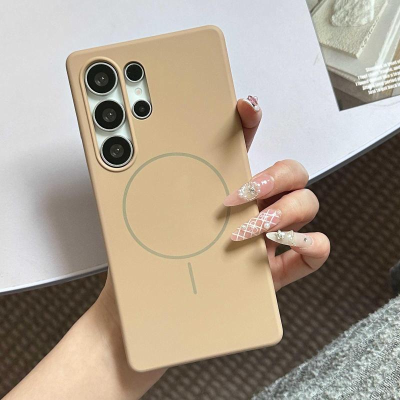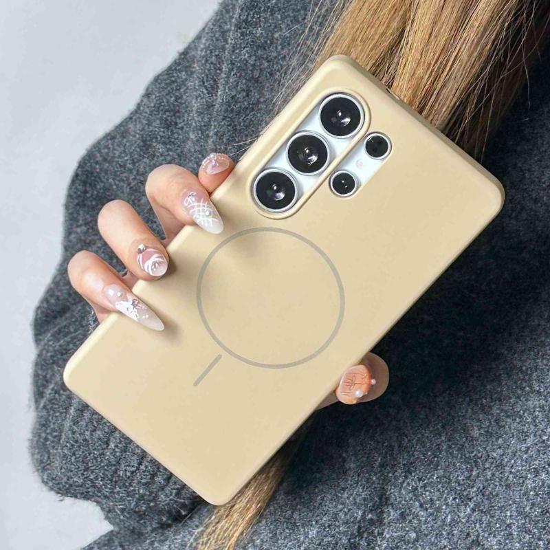 For Samsung Galaxy S24 5G 3-Side Coverage Thin Circle MagSafe Phone Case(Desert Gold)