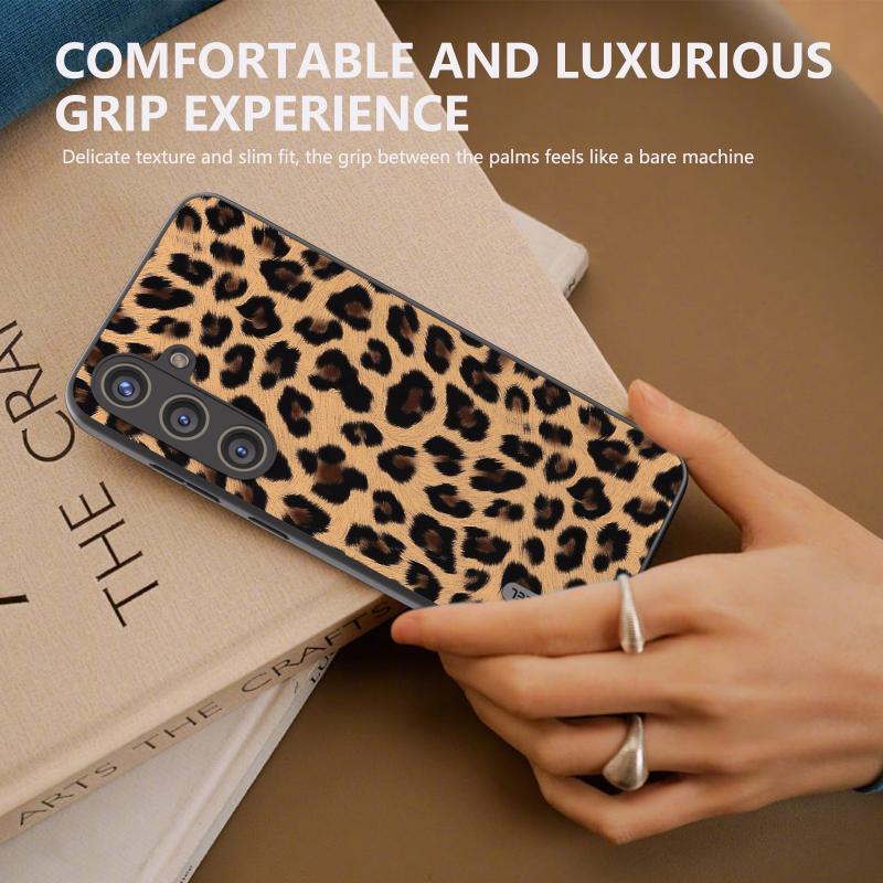 For Samsung Galaxy S24+ 5G ABEEL Black Edge Leopard Phone Case(Golden Leopard)